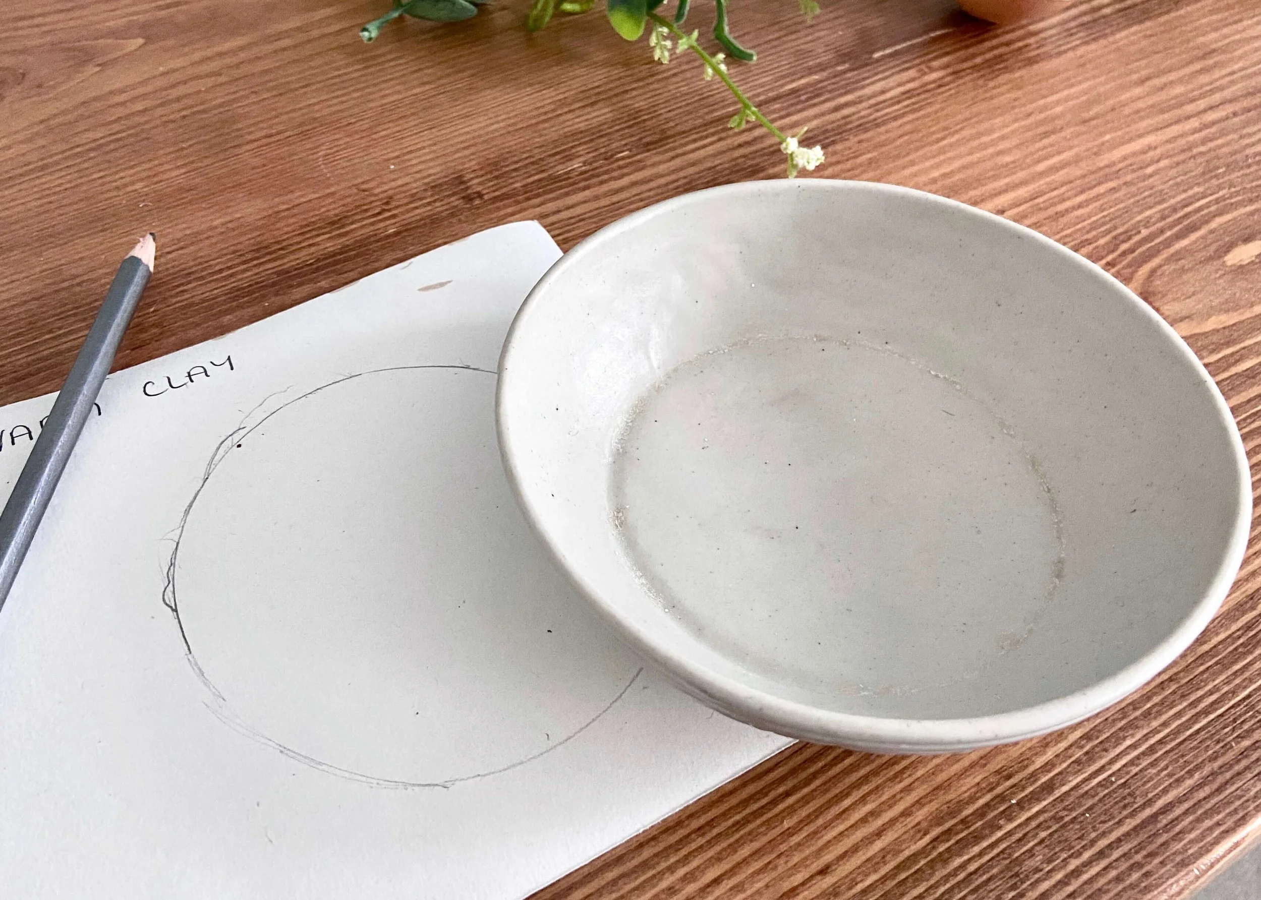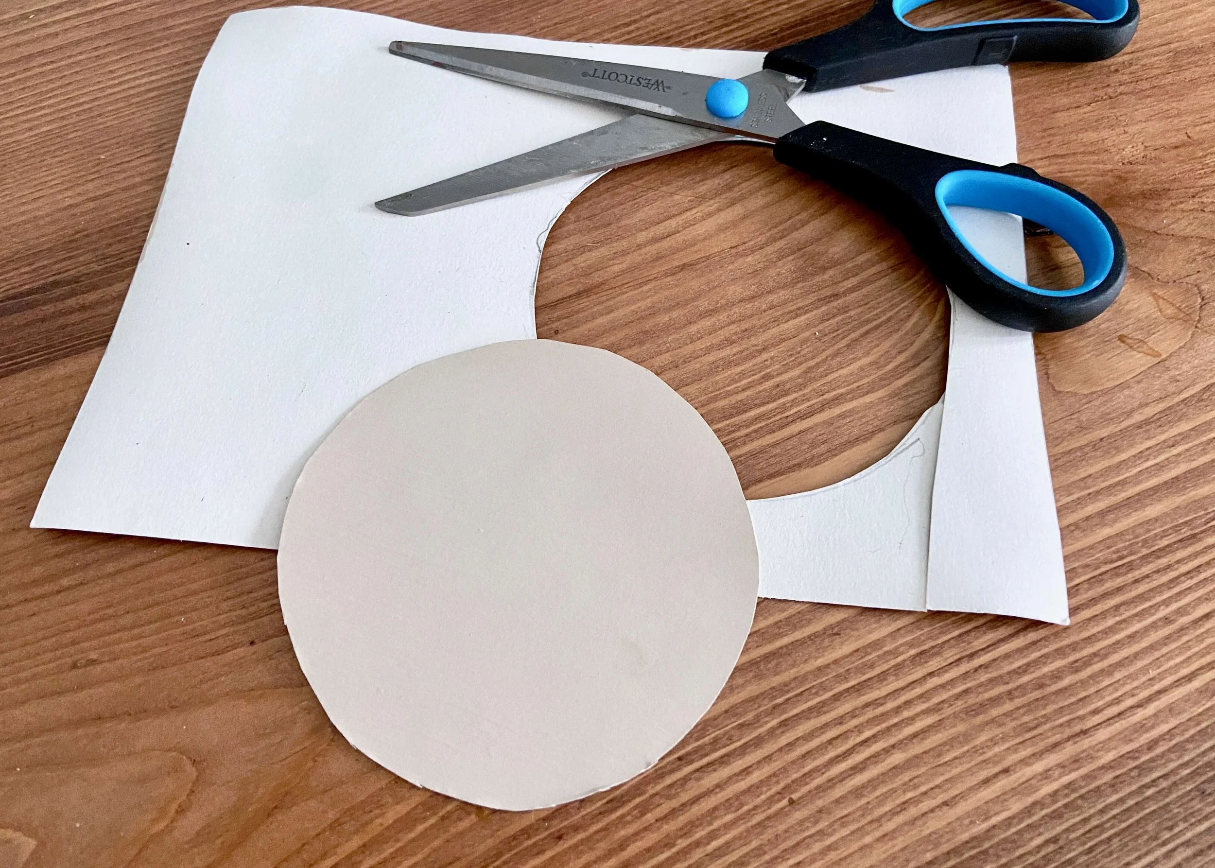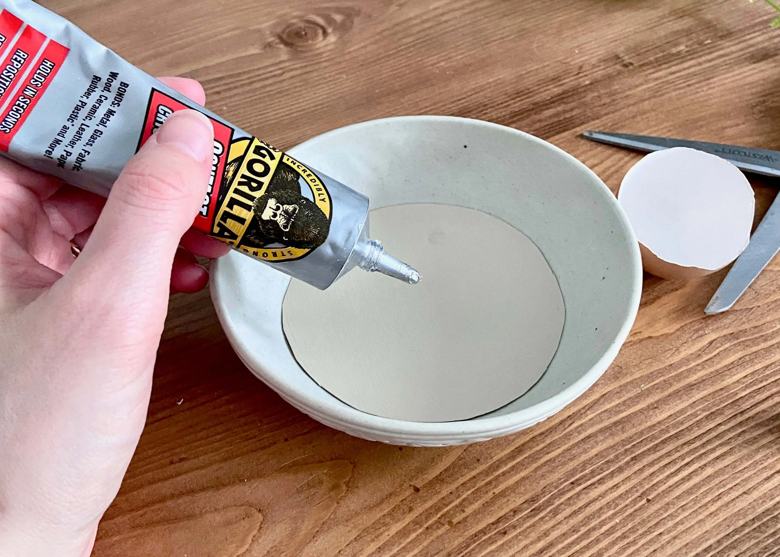 Next, I grabbed the dish I wanted to use and traced around the bottom of it onto a piece of cardstock I had previously painted with a beige tester paint.