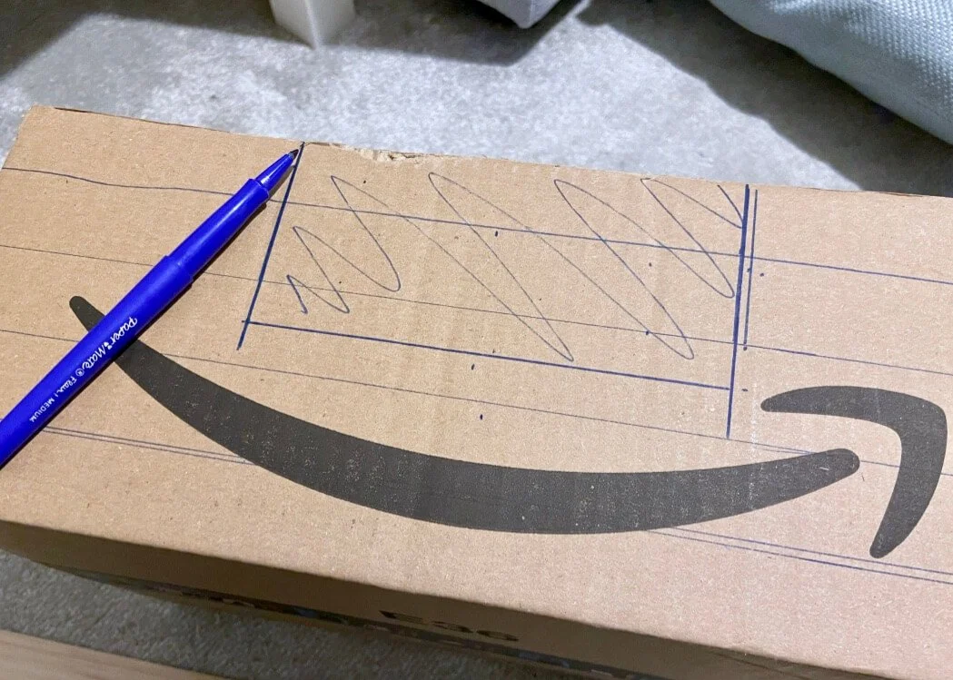 First of all, grab your pets favourite box and draw a rectangle in the top centre. Use scissors or craft knife to cut this out.